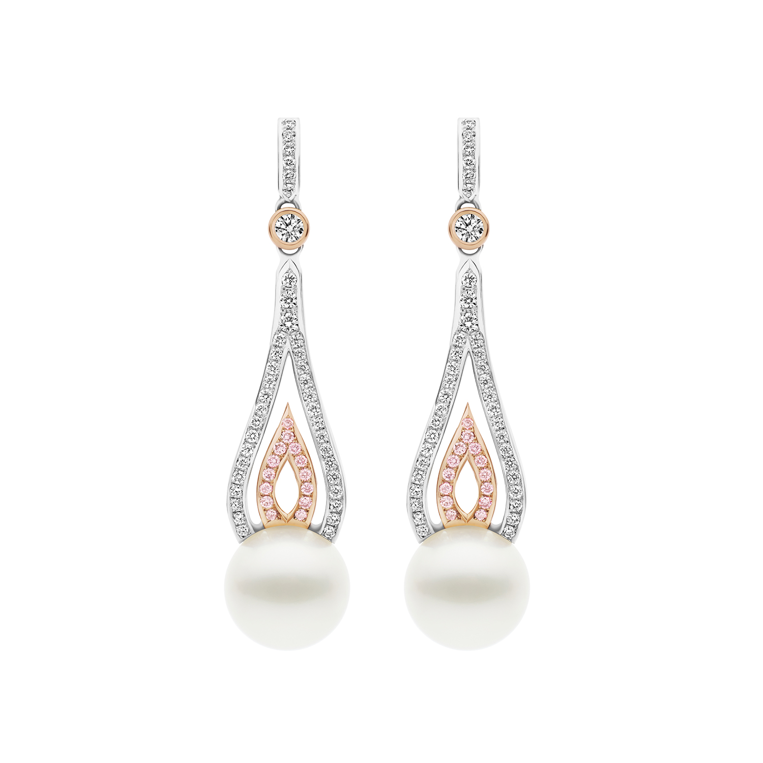 The elegant design, sophisticated elements and sparkling white and pink diamonds make these earrings the show-stopping piece in her fine jewellery collection.