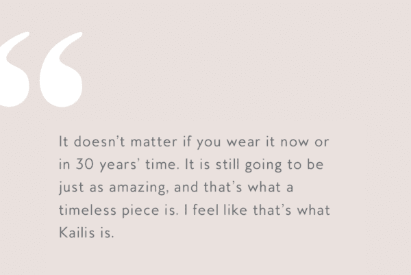 KJ: So beautiful. Dare I ask this question because I really think that you are going to struggle. What is your favourite Kailis piece?