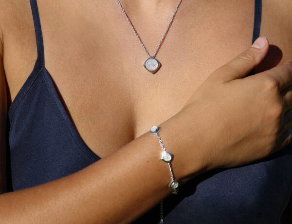All Kailis white gold jewellery is plated with white rhodium to give it brilliant shine. Such rhodium plating naturally wears over time, depending on how often the piece is worn as well as other environmental factors. It is recommend that white gold jewellery is re-plated every two years to ensure its colour and shine is as optimal as can be.