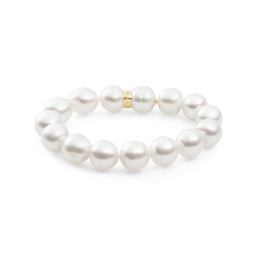 This stunning strand bracelet features 17 circle Australian South Sea pearls. Each brand 3 pearl ranges in size from 11.1 to 12.9mm, making for the ideal pearl strand bracelet that will be passed down through the generations.