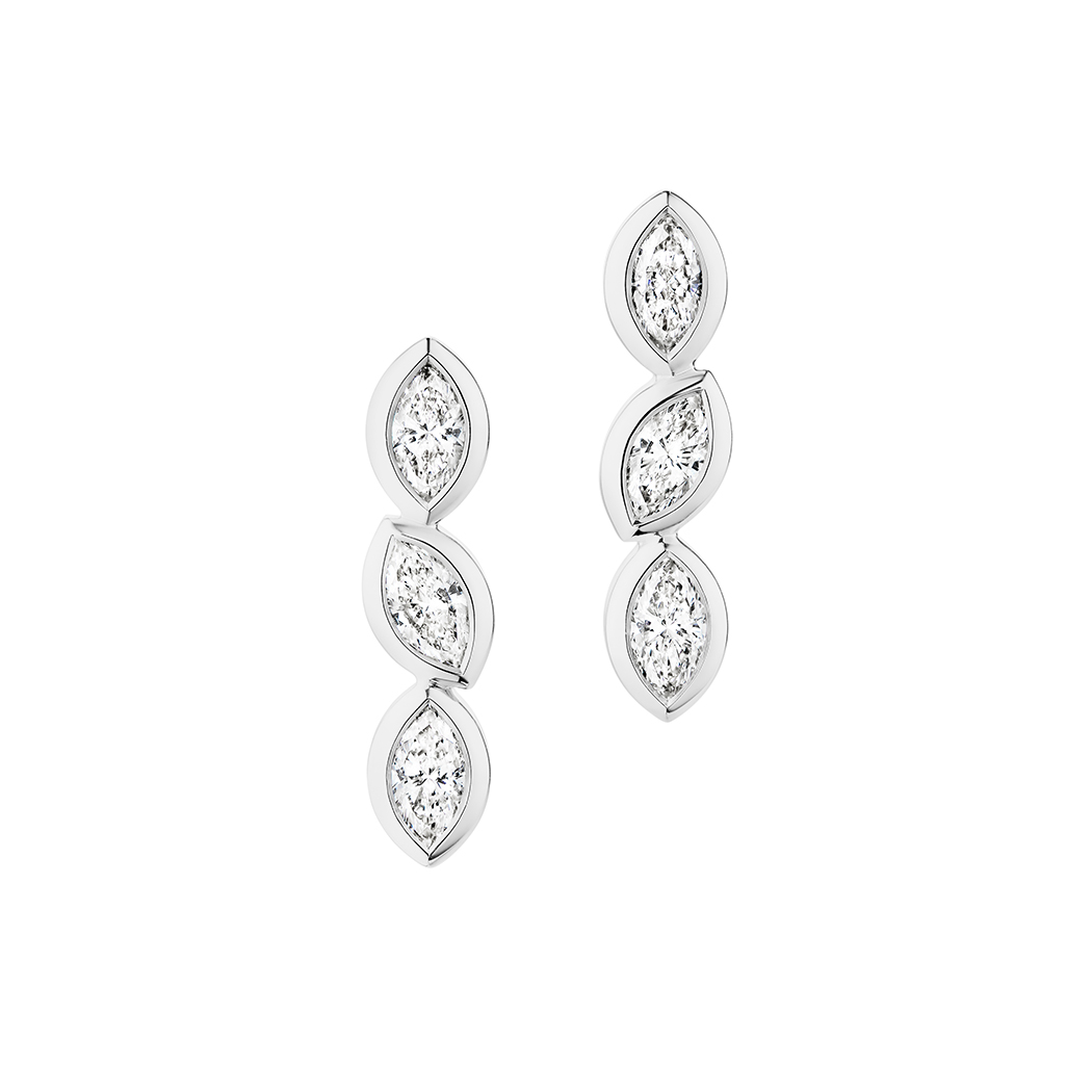 The Fleur Earrings, White Gold embraces its identity of delicate sophistication, with sparkling marquise shaped diamonds framed in 18ct white gold sitting like petals, nature’s most graceful adornments.