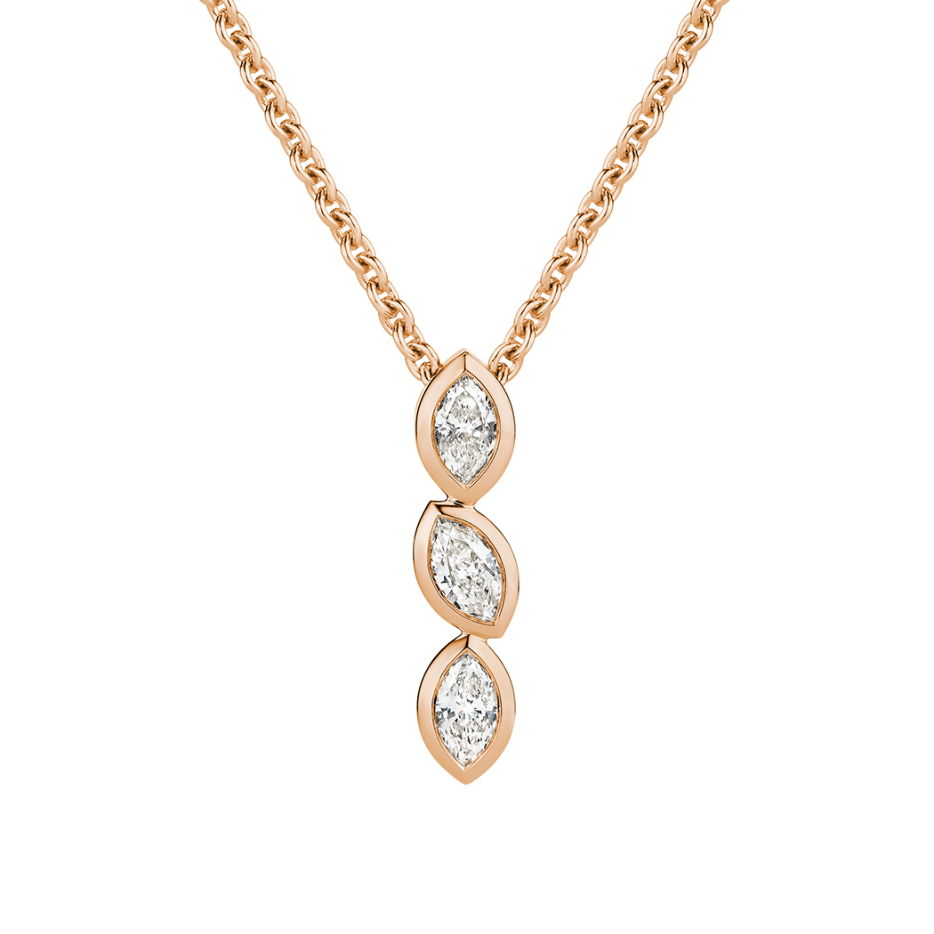 The Fleur Pendant, Rose Gold embraces its identity of delicate sophistication, with sparkling marquise shaped diamonds framed in 18ct rose gold sitting like petals, nature’s most graceful adornments.
