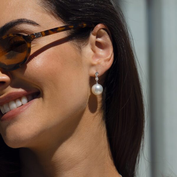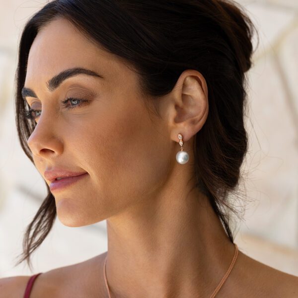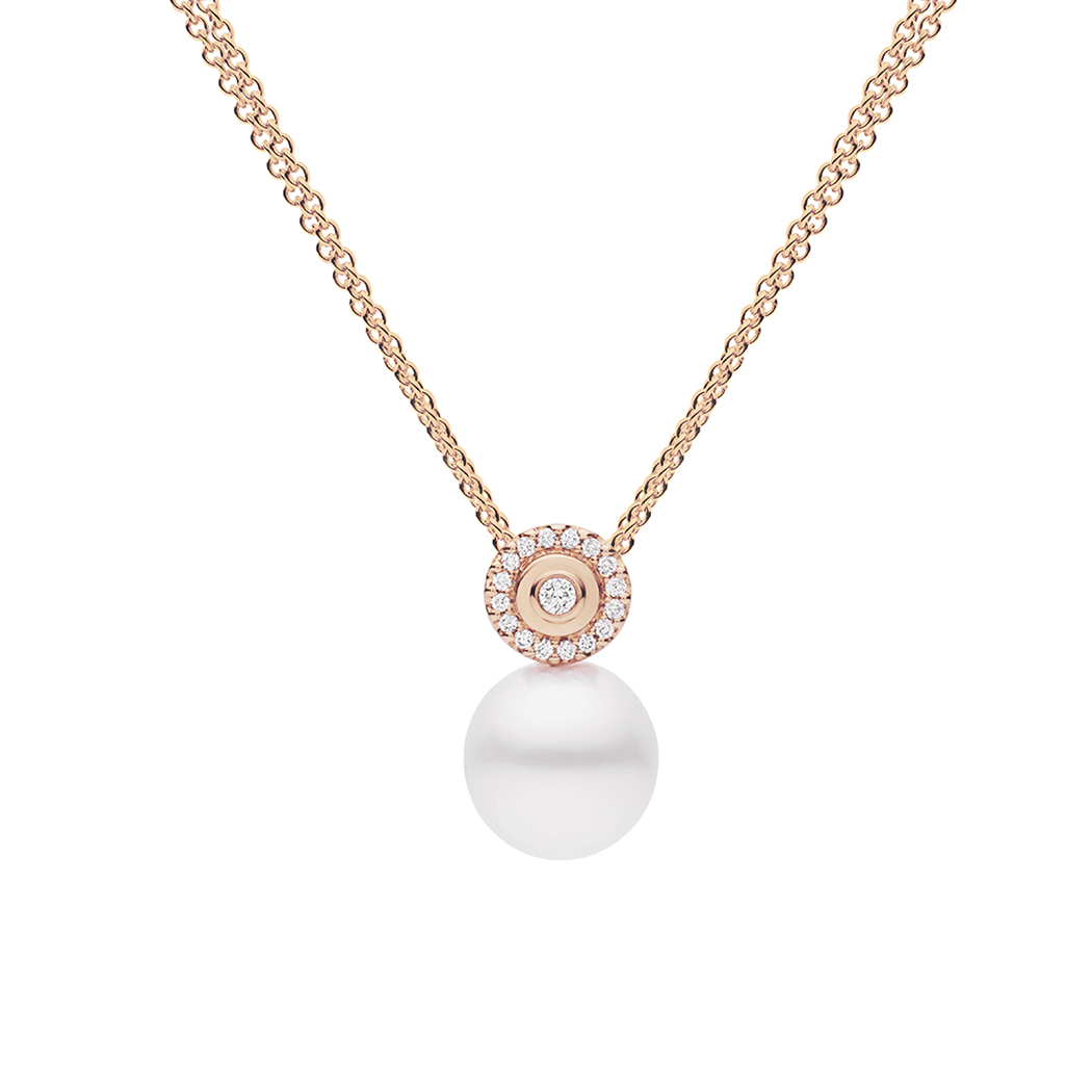 The single centre diamond creates a stunning ripple effect of light on the diamonds surrounding it. The Lilypond Pendant showcases the natural luminosity of the Australian South Sea pearl which is highlighted by this intricate diamond design.