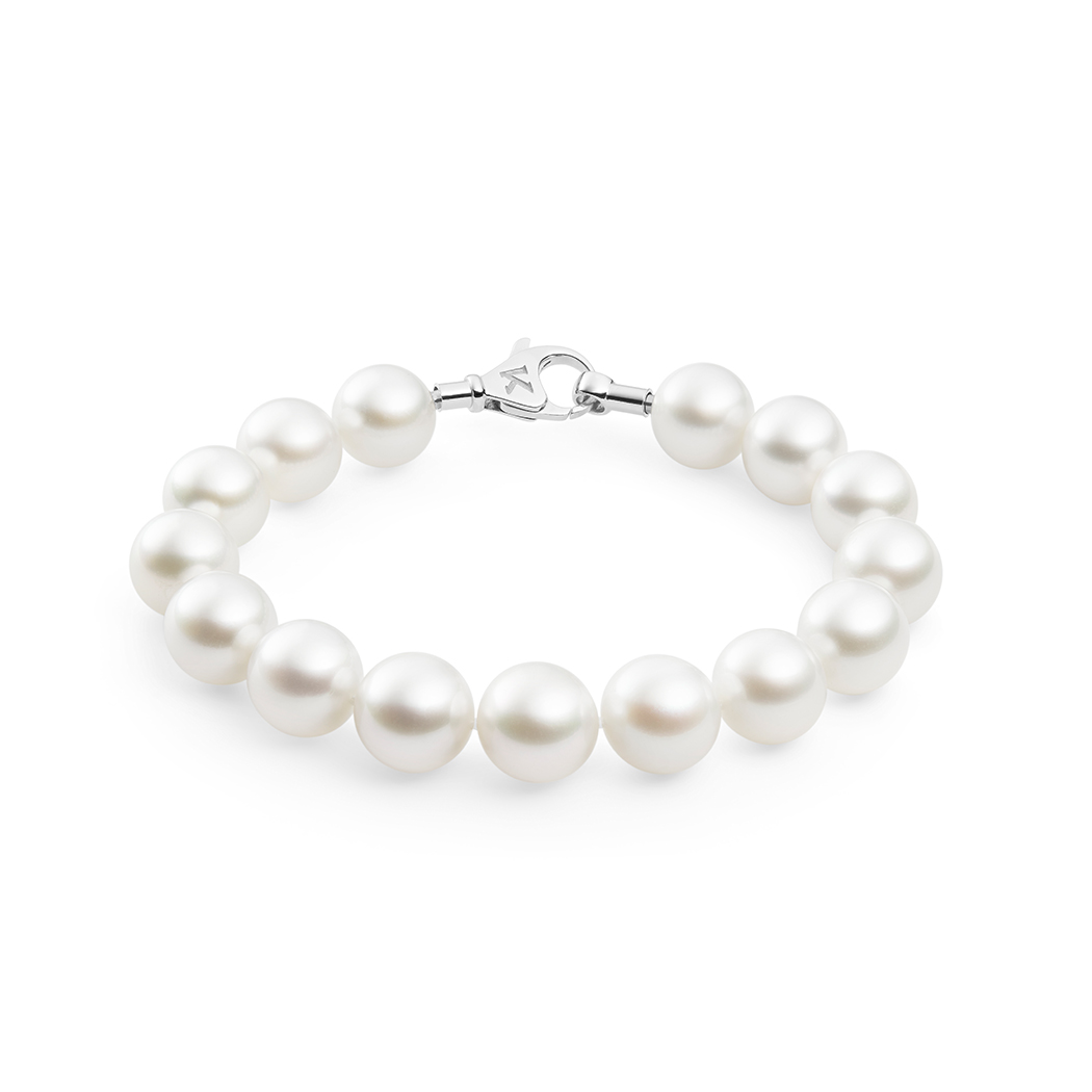 This classic strand bracelet features 15 round Australian South Sea pearls, which are the rarest and most desired pearl shape. Each brand 2 pearl ranges in size from 13 to 13.9mm. The Kailis hallmark clasp in 18ct white gold makes wearing this beautiful bracelet simple.