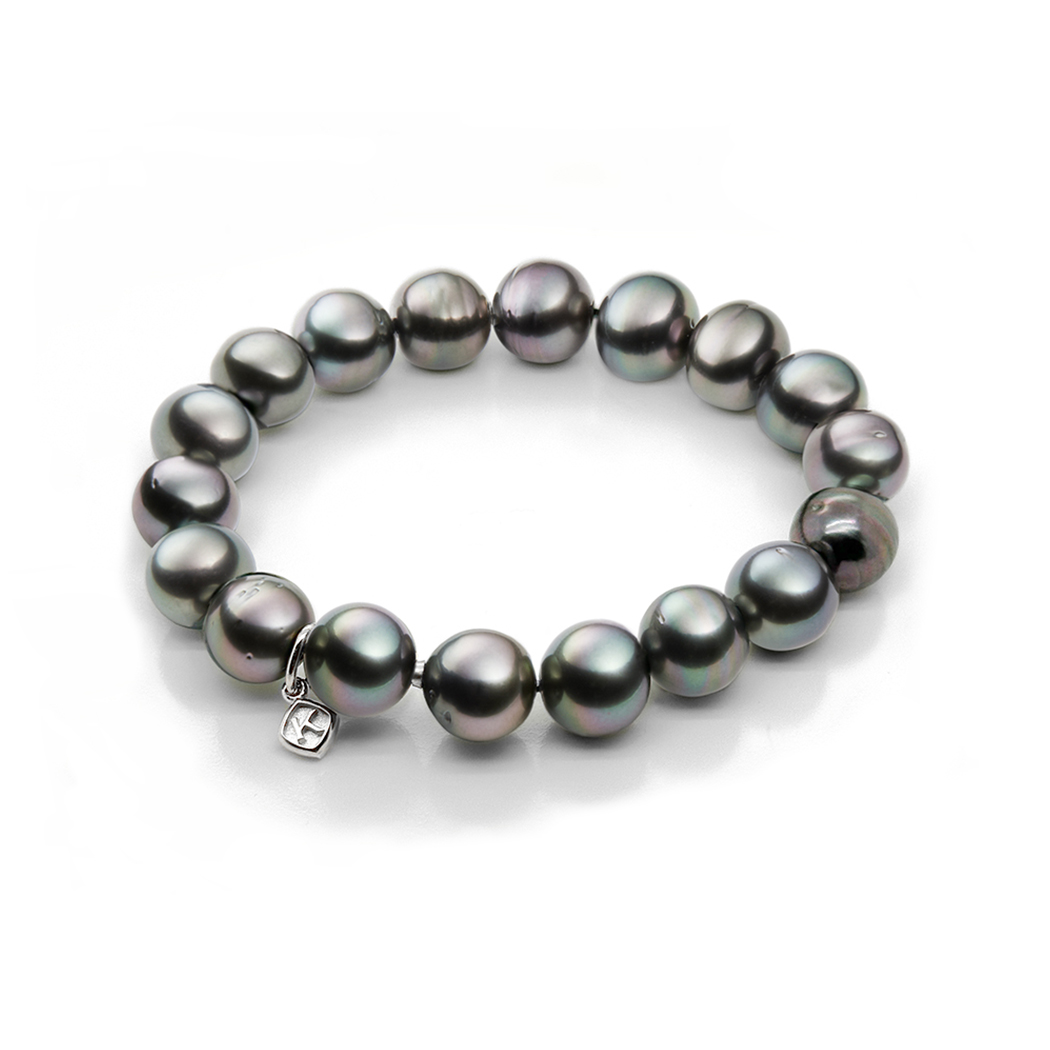 This striking strand bracelet features 17 semi-baroque Tahitian South Sea pearls. Ranging in size from 10 to 10.9mm and with incredible lustre and colour, this bracelet is a picture of beauty.