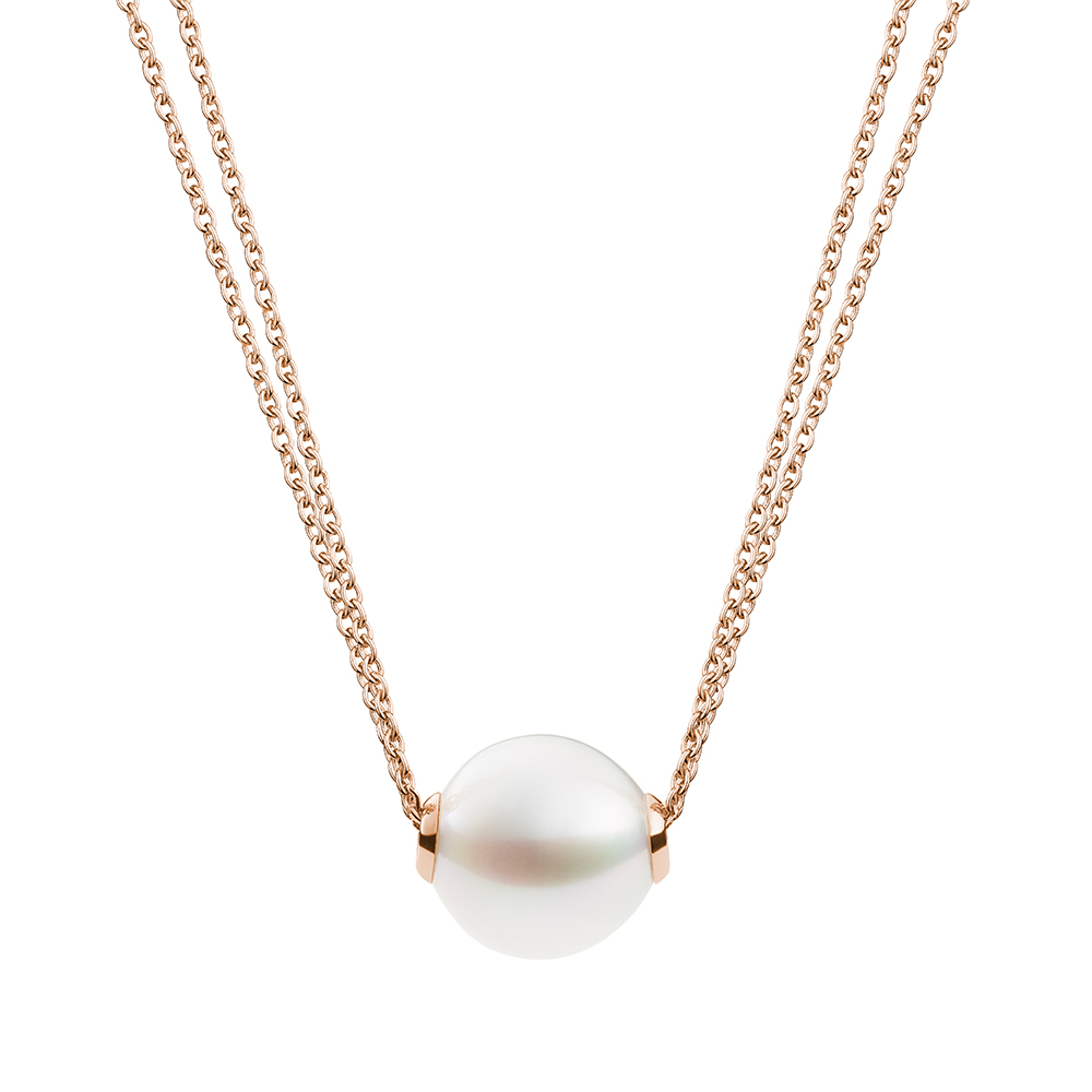 The Sliding Pearl Necklace features a lustrous Australian South Sea pearl freely sliding along a 18ct rose gold double trace chain. A timeless addition to your classic jewellery collection.
